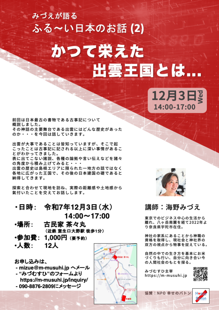 会場は、近鉄 室生口大野駅徒歩1分の「古民家 茶々丸」という風情あふれる場ですので、ゆっくりお話しを聞けると思います。
